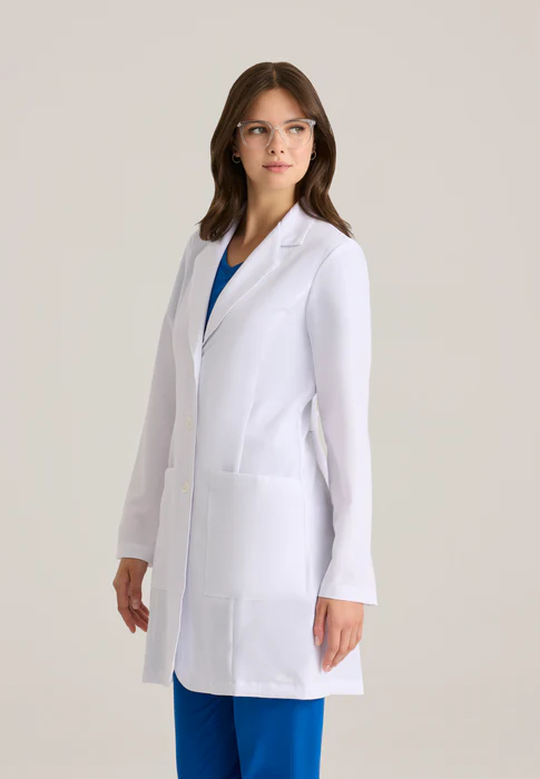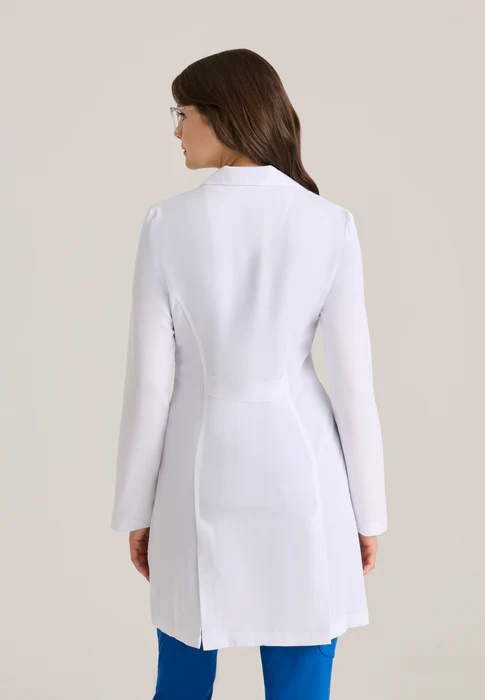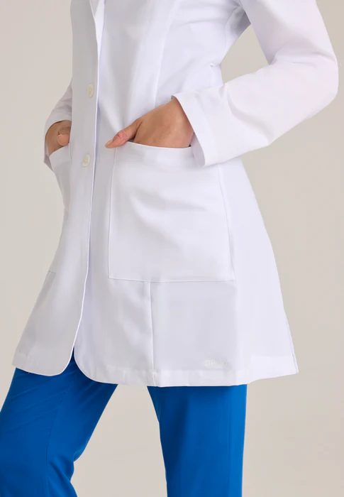 With flattering princess seams and back belt detailing, this lab coat offers a sophisticated, professional look with a slim, junior fit. In addition, the soft, stretch fabric and two spacious pockets provide the perfect mixture of comfort and functionality.