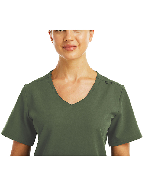 - Women’s curved V-neck top
